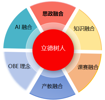 一是构建并实践了“一核心六融合四转变”的一流课程建设与育人新模式。以“立德树人”为核心,依托计算机类课程,通过思政融合、知识融合、课赛融合、产教融合、OBE融合、AI融合,推动课程建设从“单点创新”走向“系统融合”,最终实现“四转变”。即教育理念向育人中心转变、教学内容向知识融合转变、教学方法向项目探究转变、学习模式向自主学习转变,全面满足了新工科背景下计算机人才素养与创新能力培养的迫切需求。